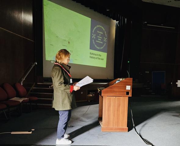 Sylvia was delighted to be invited and told the assembled corporals the stories of Jock Young and Lt Col Bruno Brown, moving on to the siege of Kohima, focusing on the enormous contribution made by the Royal West Kents. Defending the area around Kohima presented significant problems; the key feature, Garrison Hill, and a long wooded spur on a high ridge west of the village, were the scene of perhaps the bitterest fighting of the whole Burma campaign. The small area of terrain provided by this ridge and the surrounding area permitted the deployment of only one battalion, the 4th Royal West Kent Regiment.